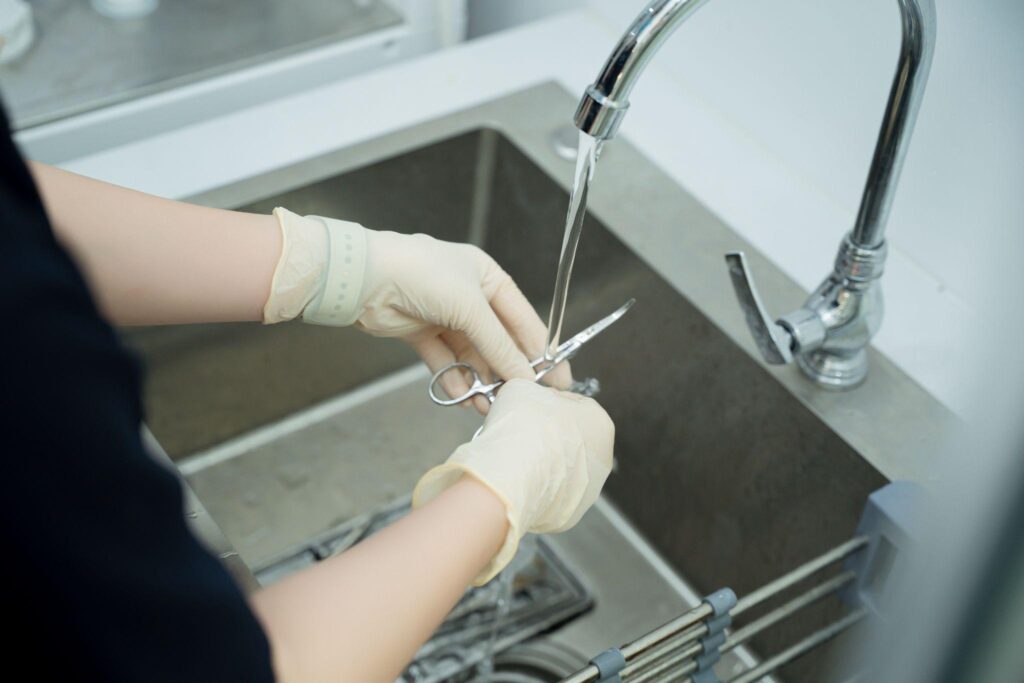 - Bước 2: Vệ sinh răng: Bác sĩ vệ sinh răng miệng kỹ lưỡng bằng nước súc miệng, dung dịch sát khuẩn chuyên dụng để loại bỏ vi khuẩn, đảm bảo an toàn cho quá trình nhổ răng.